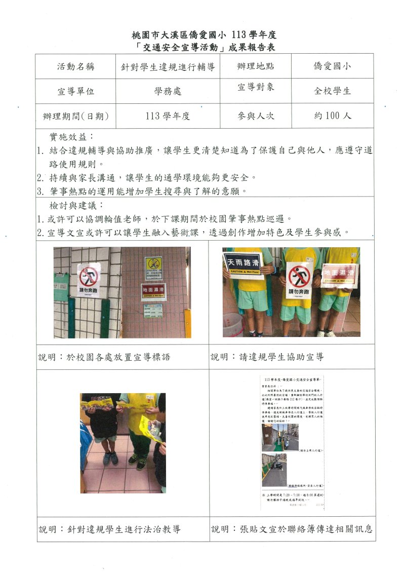 子標準3-4:針對學生違規、交通事故作統計,並實施輔導作為